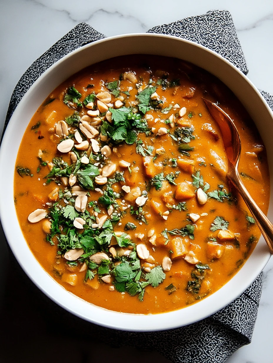 Keywords: healthy soup, peanut soup, vegan stew, African recipe, easy dinner, meal prep, comfort food
