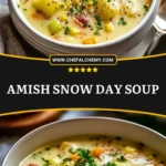 When the snow piles up outside and the chill bites at the windows, few things comfort the soul like a bowl of Amish Snow Day Soup. This heartwarming dish is a creamy, rich potato-based soup laced with bits of ham and tender vegetables. It’s the kind of meal that brings back memories of cozy kitchens and family gathered around the table.