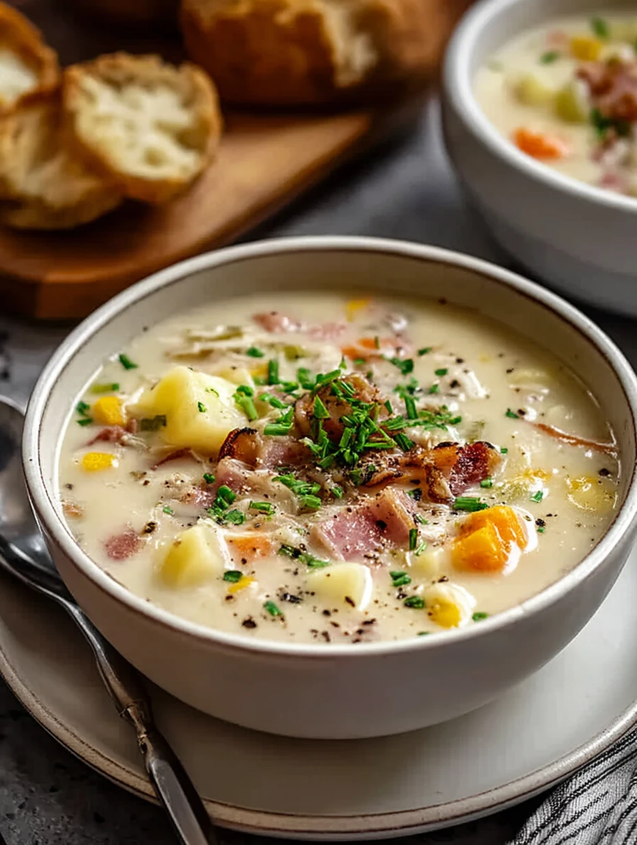 Keywords: comfort soup, snow day soup, creamy ham soup, easy potato soup, winter dinner