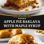 Apple Pie Baklava with Maple Syrup is a dazzling twist on two beloved classics—combining the flaky, buttery layers of traditional baklava with the warmly spiced apple filling of your favorite pie. Each bite is a balance of crisp phyllo, tender apples, and toasted walnuts, all soaked in luscious maple syrup. This dessert is perfect for fall gatherings, cozy holiday tables, or anytime you’re craving something special. Whether you’re looking for a unique take on baklava or a new way to enjoy apple pie, this is the ultimate treat. Great for holiday desserts, easy baking ideas, and fall baking recipes.