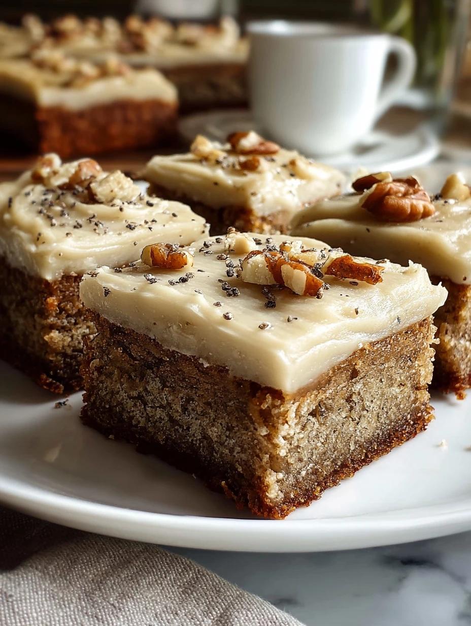 I like serving these bars at room temperature, when the frosting is set but still soft and creamy. They are perfect with coffee in the morning, as an afternoon treat, or as a simple dessert after dinner. For a more indulgent plate, I sometimes serve them slightly chilled with an extra dusting of powdered sugar.