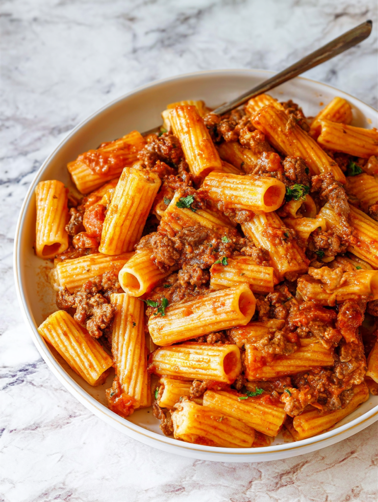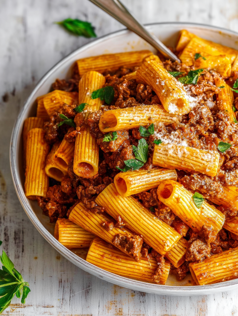 Sink your fork into this comforting Beef Ragu Pasta — a rich, meaty sauce slow-simmered with crushed tomatoes, herbs, and a splash of red wine, coating every groove of al dente rigatoni. It’s a hearty, deeply flavorful dish that feels like a warm hug at the end of a busy day. Whether you’re after easy dinner ideas, looking to impress with a weekend meal, or craving a satisfying food idea that doubles as comfort food, this easy recipe ticks every box. Great for both casual meals and cozy date nights.