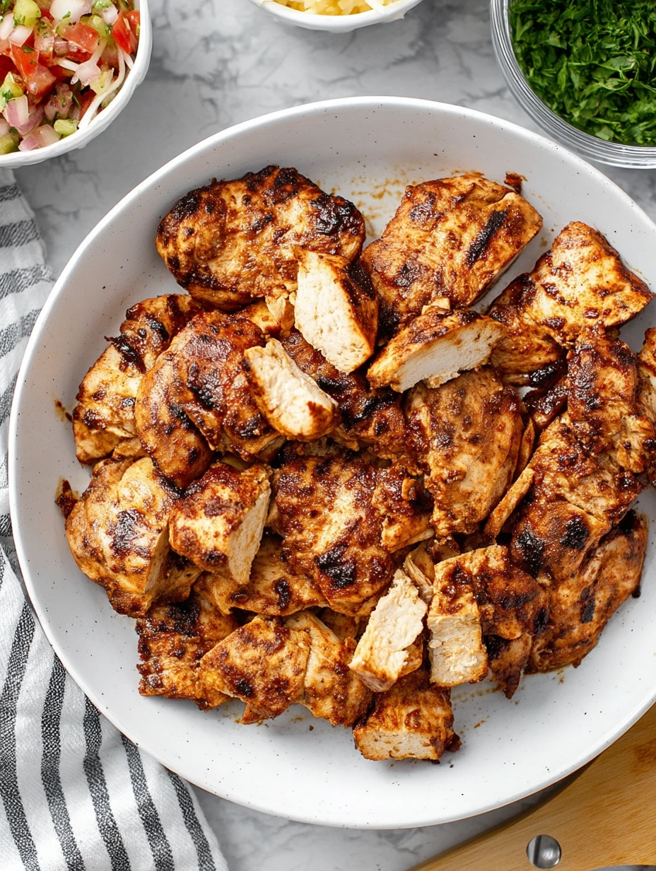 For that authentic, juicy texture, skinless chicken thighs are the top choice. Chipotle uses dark meat because it stays moist and soaks up the marinade better than chicken breast. However, if you’re after a leaner option, you can swap in chicken breast—just reduce the cook time slightly to prevent drying out.