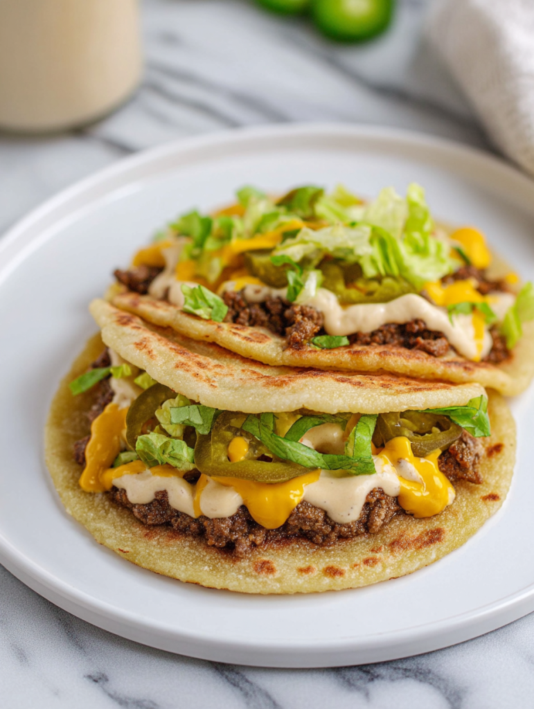 Level up taco night with a bold twist—Big Mac Smash Burger Tacos bring together crispy ground beef, melted cheddar, tangy pickles, fresh lettuce, and a drizzle of creamy Big Mac sauce, all on a perfectly griddled flour tortilla. It’s like your favorite fast food burger, reinvented as a fun, handheld taco. Whether you’re looking for a quick dinner, party snack, or just some easy recipe inspiration, this one delivers in both flavor and speed. A true crowd-pleaser that fits right into your list of must-try dinner ideas, easy meals, or even indulgent food ideas for the weekend.
