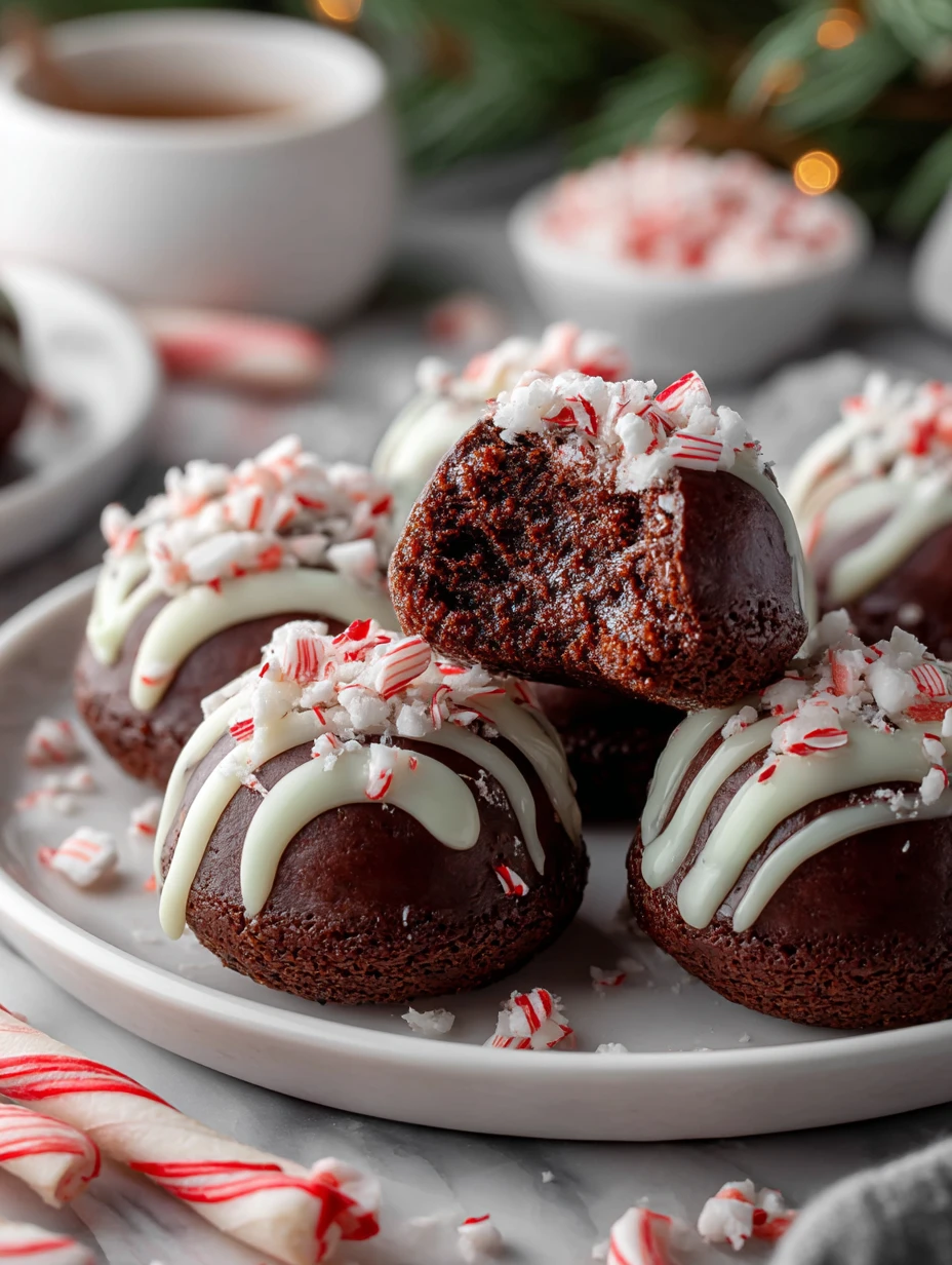 The first time I made these Candy Cane Brownie Bombs, I wanted something that felt extra festive without turning the whole kitchen into a full-day baking project. What came out of the oven was exactly what I was craving: rich chocolate brownie bites with a creamy center, finished with silky white chocolate and a shower of peppermint candy.