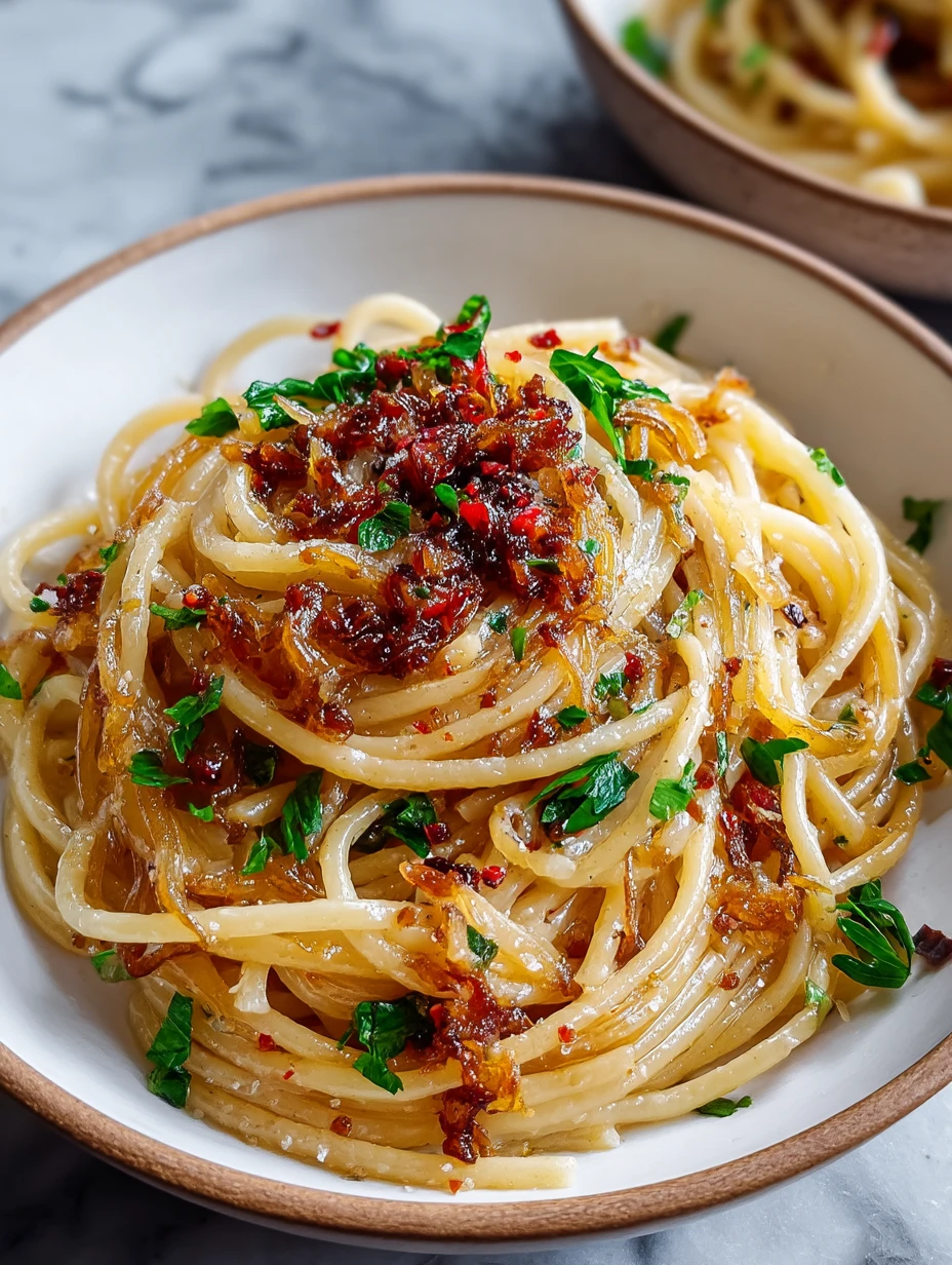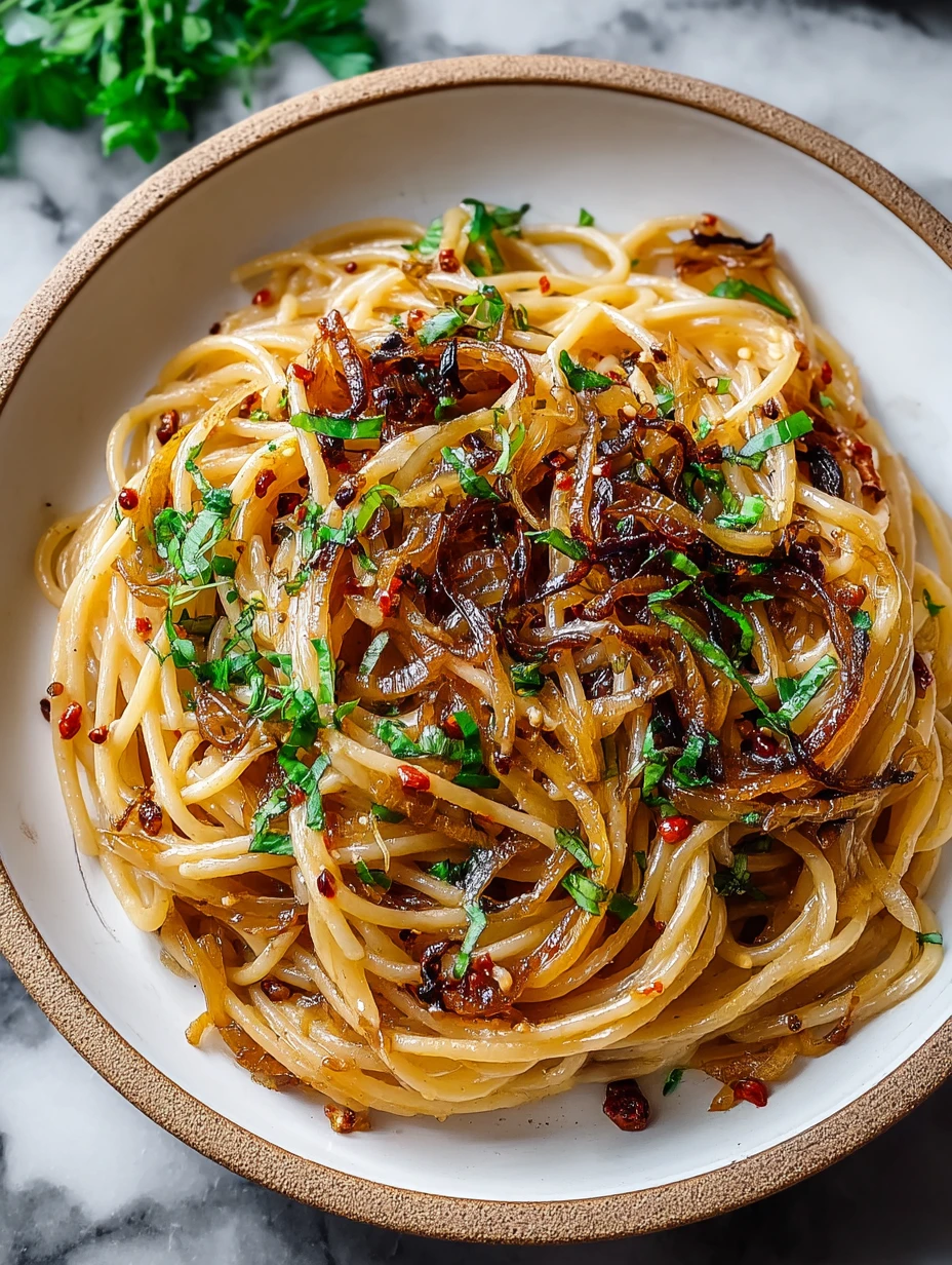 Sweet, savory, and just the right touch of heat, this Caramelized Onion Pasta with Chilli Oil is a flavor explosion that transforms humble pantry staples into a restaurant-worthy dish. The deeply caramelized onions create a jammy, golden-brown tangle of sweetness, wrapped lovingly around tender pasta and contrasted with fiery chilli oil.