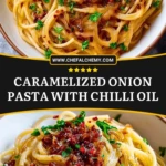 Turn pantry staples into gourmet magic with this Caramelized Onion Pasta with Chilli Oil—a wildly flavorful, easy dinner idea for spice lovers. Sweet golden onions melt into a buttery sauce, wrapped around perfectly cooked pasta and finished with a kick of homemade or store-bought chilli oil. It’s the perfect recipe when you want something both comforting and bold. Ideal for a cozy dinner, casual hosting, or a meatless Monday hit. Whether you’re looking for a quick weeknight dinner, meatless main, or bold food idea, this spicy-sweet pasta delivers big flavor with minimal effort.
