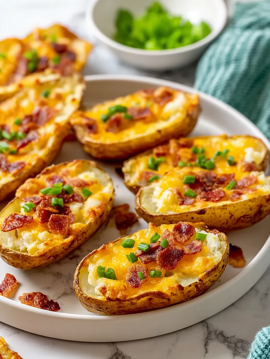 Leftovers can be cooled completely and stored in an airtight container in the refrigerator for up to 3 days. To reheat, place the potato skins on a baking sheet and warm them in a 375°F (190°C) oven for 10–12 minutes, or until heated through and crisp again. Avoid microwaving, as it tends to soften the skins.