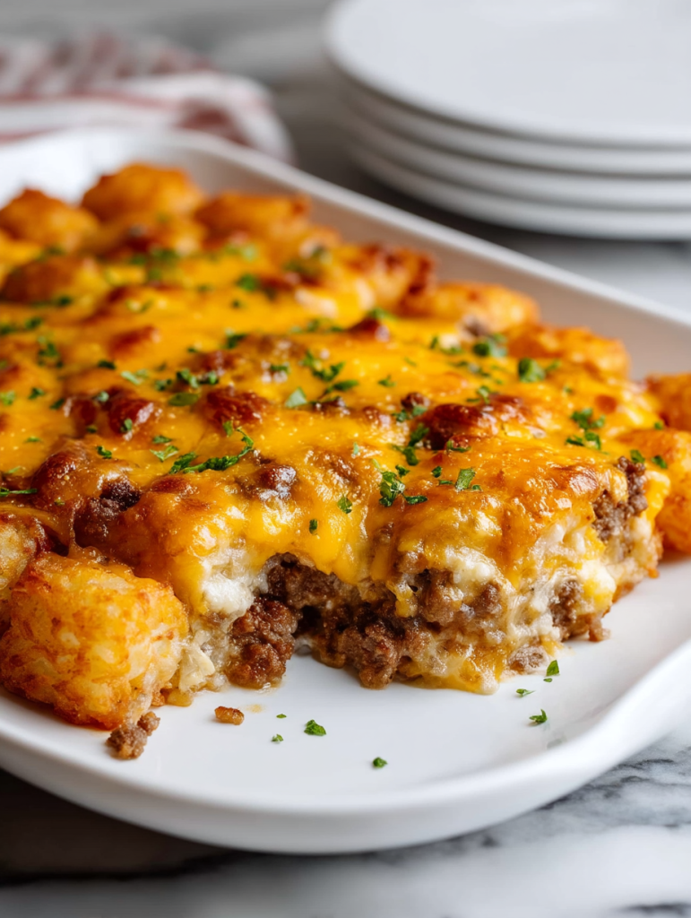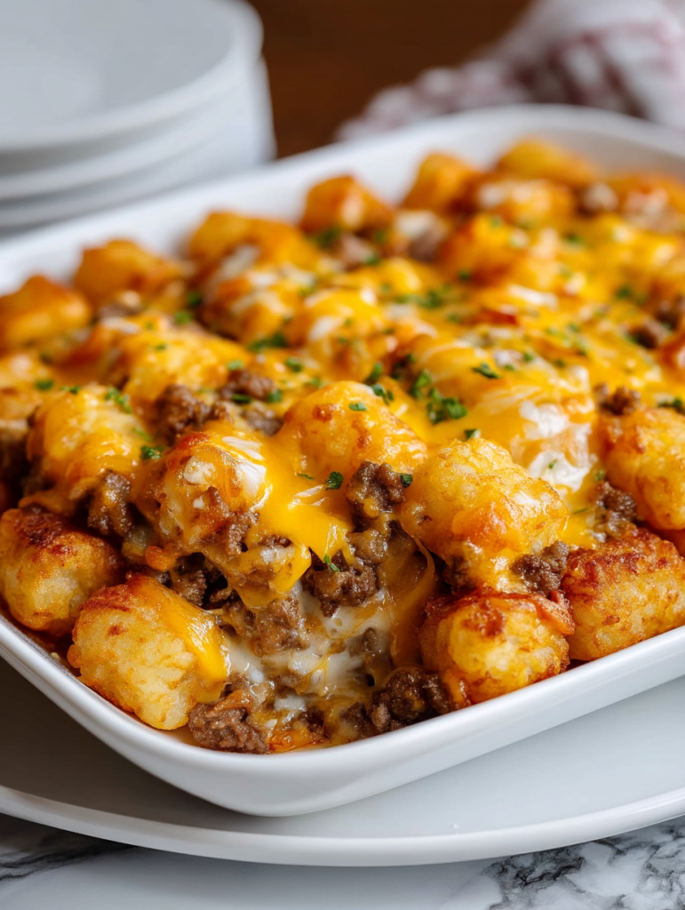 Tater Tots: These crispy nuggets form the top layer and give this dish its signature crunch and charm.