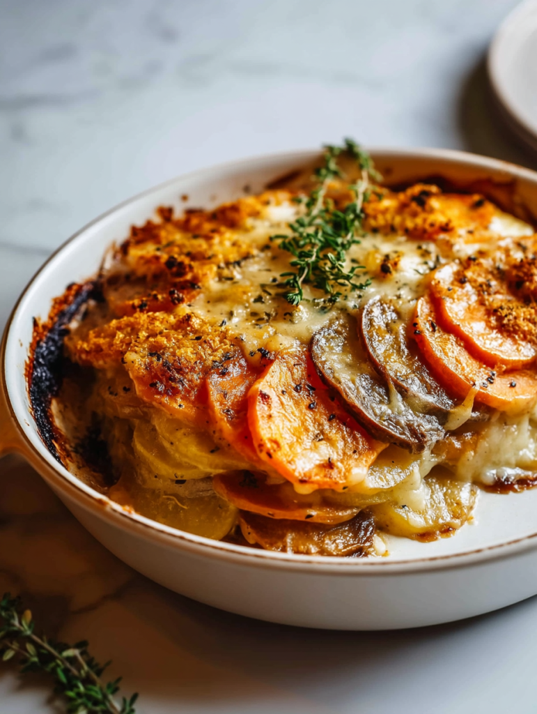 This Cheesy Root Veggie Gratin is a cozy, comforting casserole that brings together layers of vibrant root vegetables baked in a luscious, cheesy cream sauce. Perfect for holidays, Sunday dinners, or simply when you crave something hearty and homemade, this dish offers rustic charm and flavor in every bite. The medley of colorful vegetables creates a stunning presentation, while the blend of cheeses melts into every layer, making it irresistibly creamy.