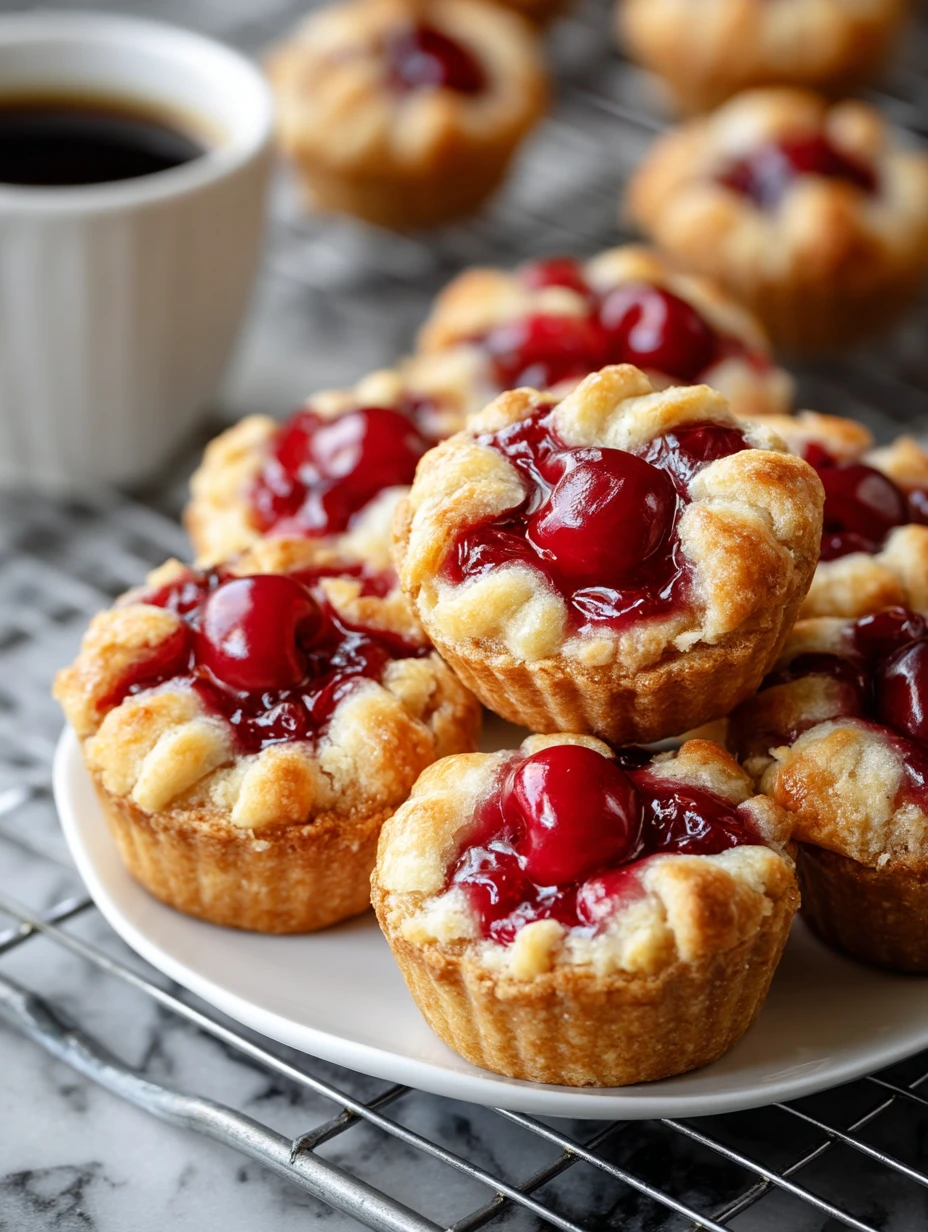 Each bite starts with buttery puff pastry baked in a mini muffin pan so it turns crisp on the edges and tender in the center. A spoonful of gooey cherry pie filling and a bright maraschino cherry on top bring all the nostalgic flavor, while a quick powdered sugar glaze adds that irresistible finishing touch.