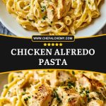 Ready to wow your dinner table? This Chicken Alfredo Pasta brings everything you love about creamy comfort food—tender golden chicken, silky rich Alfredo sauce, and perfectly cooked fettuccine noodles. It’s indulgent, easy, and packed with flavor. Perfect for a cozy night in or a last-minute family dinner idea, this easy recipe is a weeknight hero. Whether you’re after quick dinner recipes, comforting food ideas, or new pasta dinner inspiration, this dish checks all the boxes for flavor and simplicity.