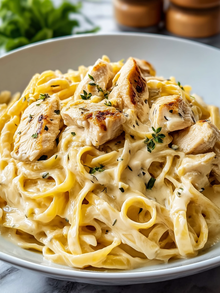 Traditionally, Alfredo sauce pairs beautifully with fettuccine—its wide, flat noodles are perfect for holding onto the creamy sauce. However, feel free to experiment with tagliatelle, linguine, or even penne if that’s what you have on hand. The goal is to choose a pasta that can cling to the sauce and support those hearty bites of chicken.