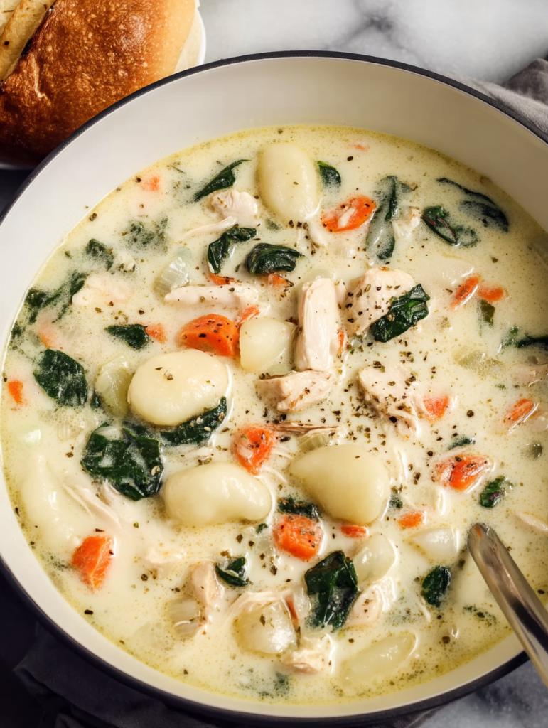 Potato Gnocchi: These soft dumplings are the star of the show—they soak up all the creamy broth and deliver that signature pillowy bite.