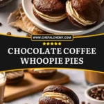 These Chocolate Coffee Whoopie Pies are the kind of dessert that instantly feels special. Soft, cake-like chocolate cookies sandwich a fluffy coffee cream filling, giving you that perfect mix of rich cocoa flavor and smooth café-style sweetness. They are an easy dessert for parties, holiday baking, afternoon coffee breaks, and anyone looking for new dessert ideas, chocolate treats, easy baking recipes, homemade sandwich cookies, and fun food ideas that taste as good as they look.