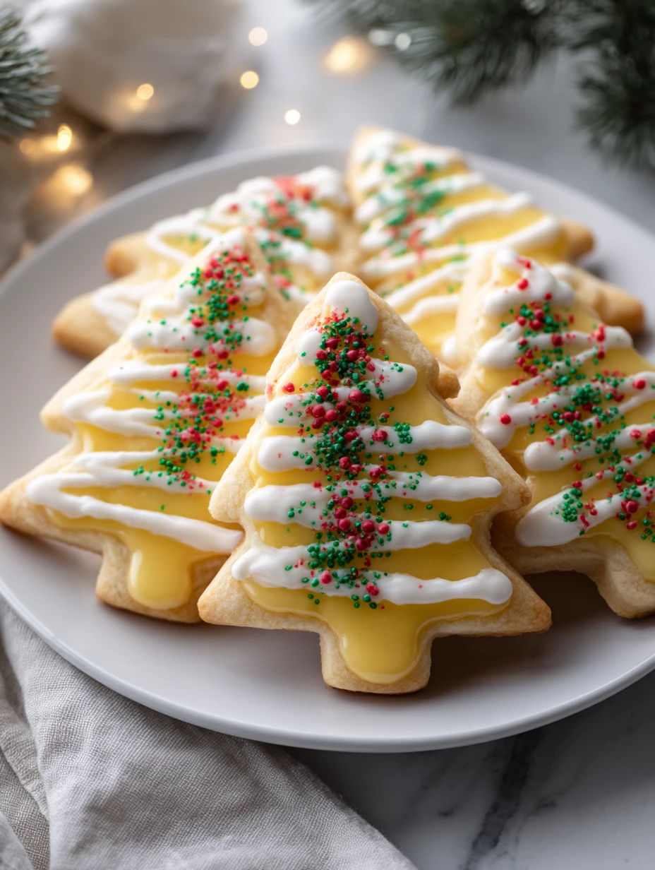 I love setting a plate of these on the table and watching everyone reach for the sunny yellow trees first. The tangy lemon icing, snowy white drizzle, and little sparkles of sugar make them look like frosted Christmas trees at sunset—and they taste every bit as magical.