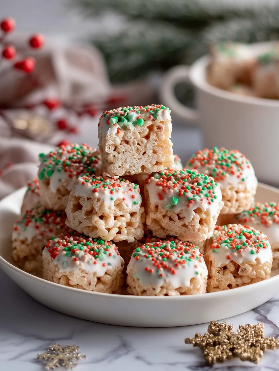 Keywords: Christmas Rice Crispy Treats With Sprinkles, holiday dessert, no bake Christmas treats, easy dessert, sweet snack, food ideas, Christmas party dessert