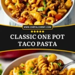 Classic One Pot Taco Pasta is the kind of easy dinner that makes busy weeknights feel special: taco-seasoned ground beef, tender pasta shells, and plenty of melty cheese all simmer together in one pot for minimal cleanup and maximum comfort. This creamy, flavorful skillet meal delivers all the fun of taco night in a cozy bowl of pasta and comes together fast enough for quick breakfast-for-dinner cravings, easy dinner plans, and weeknight food ideas when you’re out of inspiration—think effortless dinner ideas, family-friendly easy recipe vibes, and satisfying comfort food that still fits into your simple everyday meal planning.