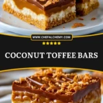 Indulge in these irresistible Coconut Toffee Bars, a layered dessert dream that brings together a crunchy graham cracker crust, creamy white chocolate center, and a toffee-coconut topping that’s pure magic. Whether you’re looking for an easy dessert for a party, a quick treat to satisfy a sweet craving, or creative baking ideas for the holidays, this recipe delivers. Each bite hits the perfect balance of chewy, creamy, and crunchy, with a buttery richness that makes these bars unforgettable. Perfect for gifting or freezing ahead. These are your new favorite dessert bars to impress and enjoy!