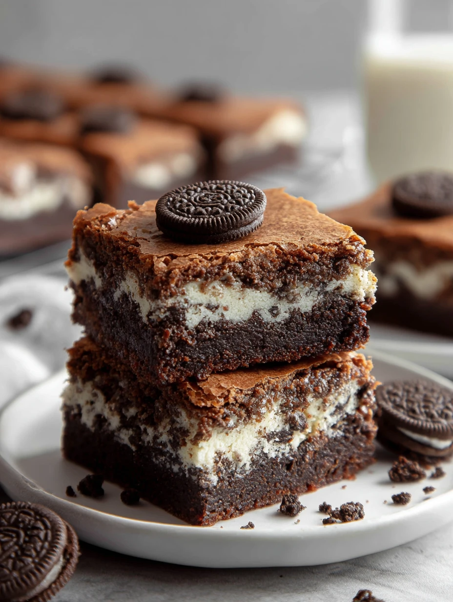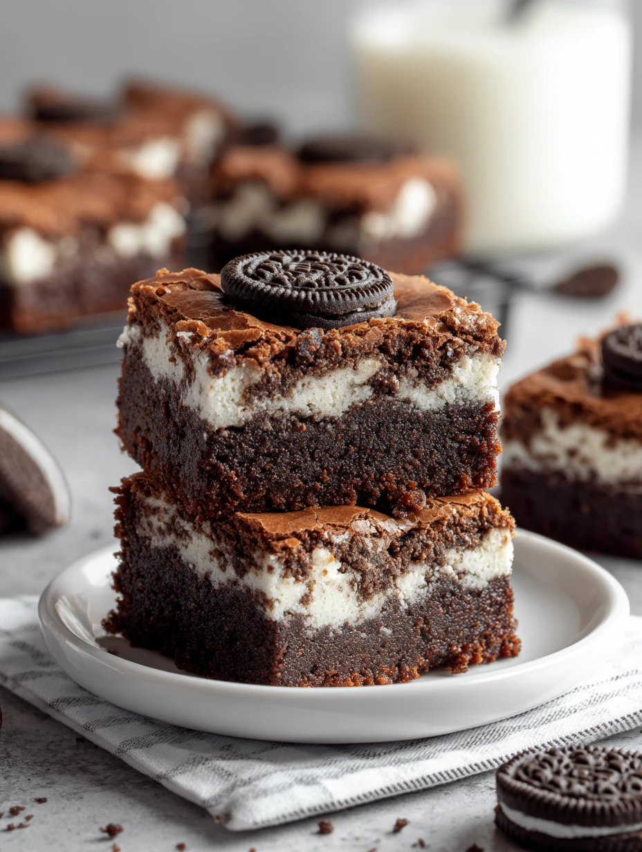 What I love most is how these brownies look impressive without asking for anything complicated from me in the kitchen. The contrast between the fudgy chocolate and that rich cookies-and-cream filling makes every square feel bakery worthy, but the process is simple enough for a casual weekend bake, party tray, or late-night craving.