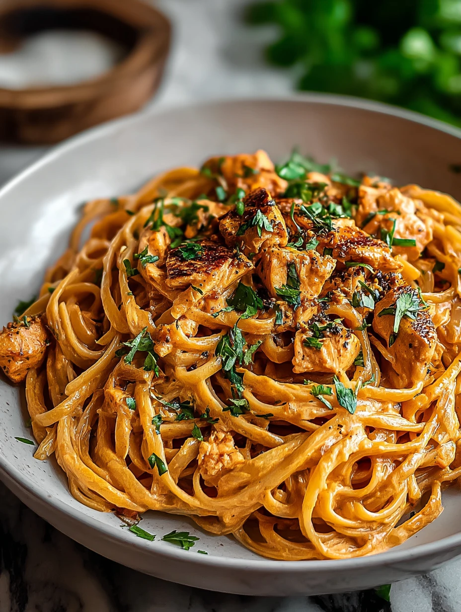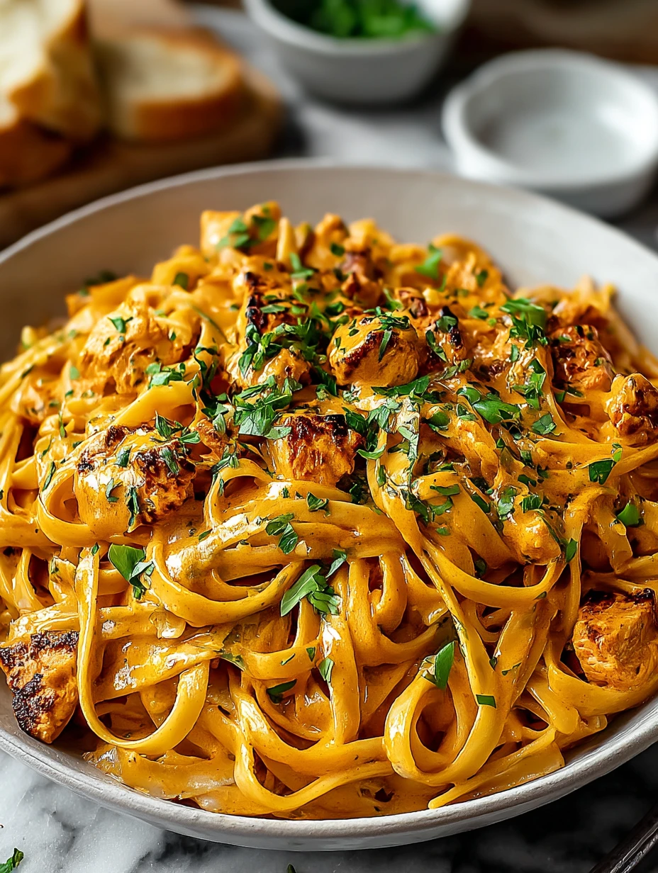 Think golden-seared chicken tossed in a buttery sauce infused with garlic, smoked paprika, lemon, Dijon mustard, and fresh herbs. Then swirled with tender linguine and finished with a splash of cream, it’s rich, bold, and exactly what a weeknight dinner upgrade should taste like.