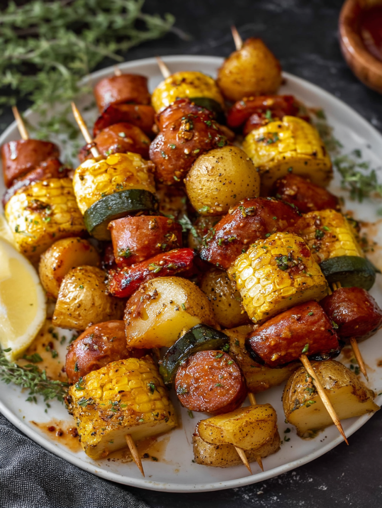 - Smoked Kielbasa: The star of the skewer—rich, flavorful, and grill-ready.