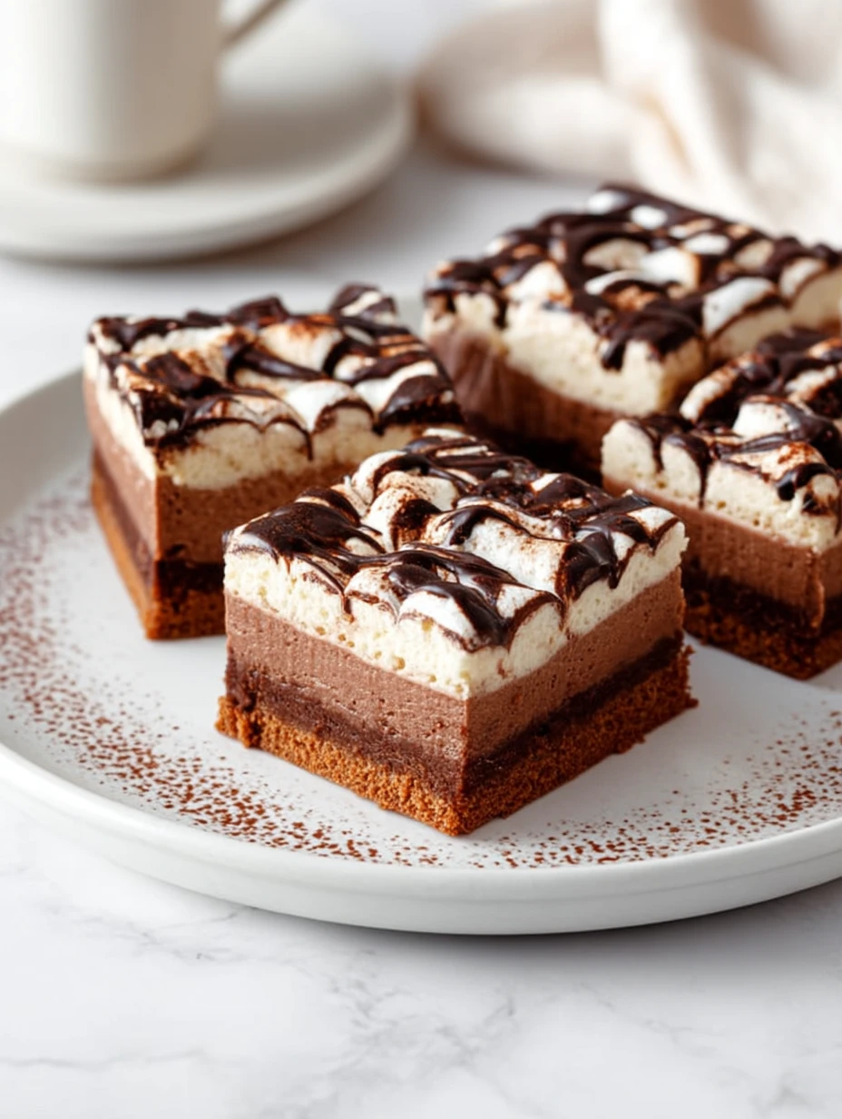 Refrigerate the bars for at least 6 hours or overnight. Before serving, top with mini marshmallows and a light dusting of cocoa powder.