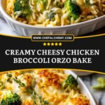 Keywords: creamy cheesy chicken broccoli orzo bake, chicken broccoli orzo casserole, easy dinner, creamy chicken casserole, baked orzo recipe, family dinner, comfort food