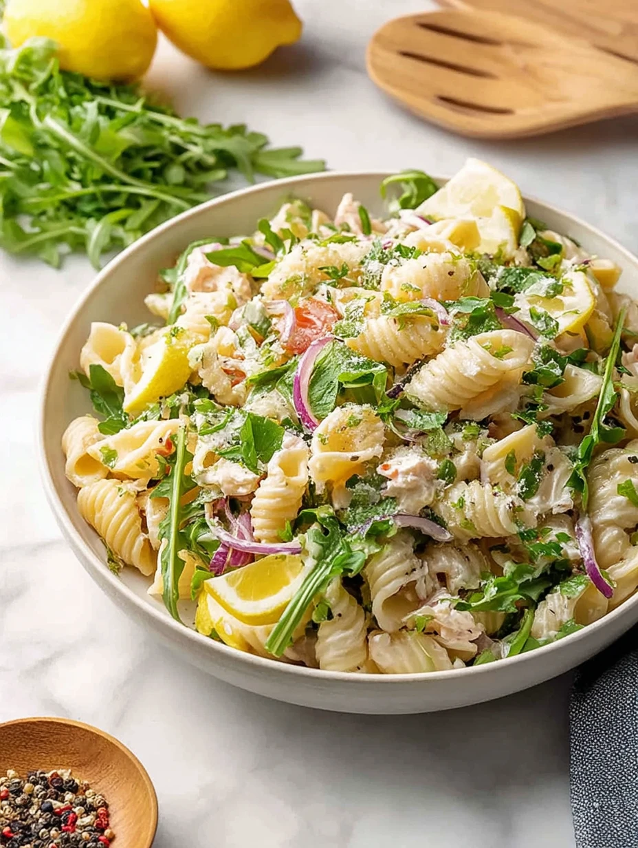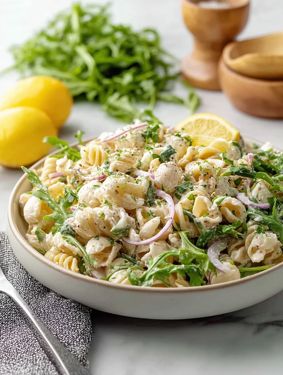 I love a pasta salad that feels bright, creamy, and easy enough to throw together without turning the kitchen upside down, and this Creamy Lemon Pasta Salad checks every box for me. It has that perfect balance of tender rotini, juicy bites of chicken, peppery arugula, a little sharpness from red onion, and a silky lemony dressing that clings to every twist of pasta.