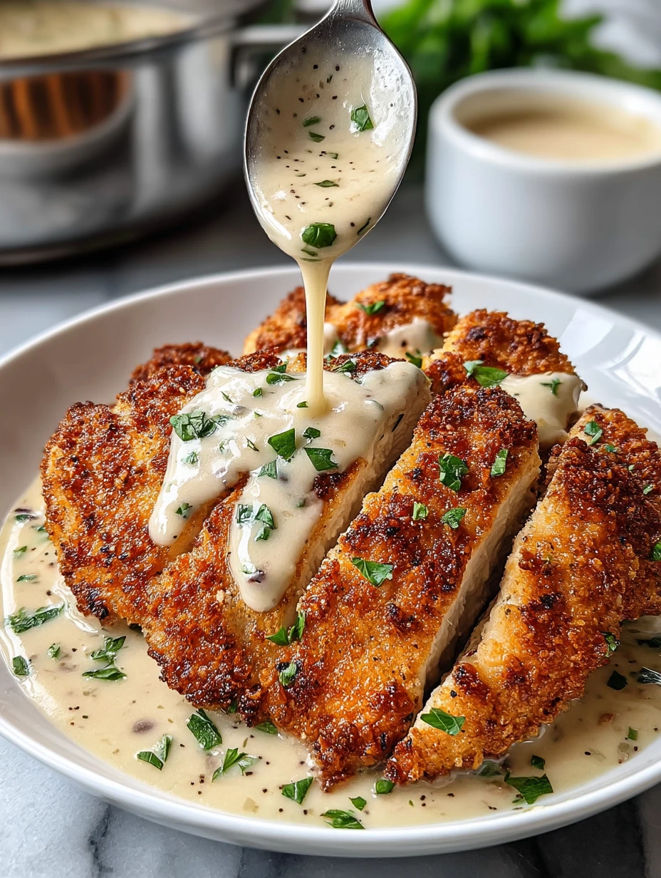 Golden, crispy, juicy chicken coated in a flavorful parmesan crust, bathed in a luxuriously creamy garlic sauce—this Creamy Parmesan Crusted Chicken with Garlic Sauce is comfort food turned elegant. The perfect harmony of textures and flavors makes this dish a standout for both weeknight meals and indulgent dinner parties.