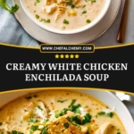 Get ready to cozy up with a bowl of Creamy White Chicken Enchilada Soup—a rich, velvety, and flavor-packed comfort meal that brings the boldness of enchiladas into a soul-soothing soup. This one-pot wonder is loaded with shredded chicken, hearty beans, sweet corn, and mild green chiles, all simmered in a creamy, spiced broth. Topped with crunchy tortilla strips and melty cheese, it’s the perfect dish for easy dinners, weekly meal prep, or impressing guests. Great for those looking for quick dinner ideas, easy one-pot recipes, or family-friendly meals that never miss.