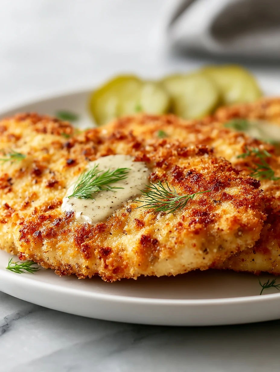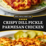 Golden, crispy, and kissed with tangy dill flavor, this Crispy Dill Pickle Parmesan Chicken is anything but your ordinary chicken dinner. Each juicy cutlet is coated with a crunchy Parmesan crust and smothered in a creamy dill pickle sauce that brings out bold, addictive flavors. Whether you’re a pickle lover or just in need of a dinner with serious personality, this one’s guaranteed to impress.