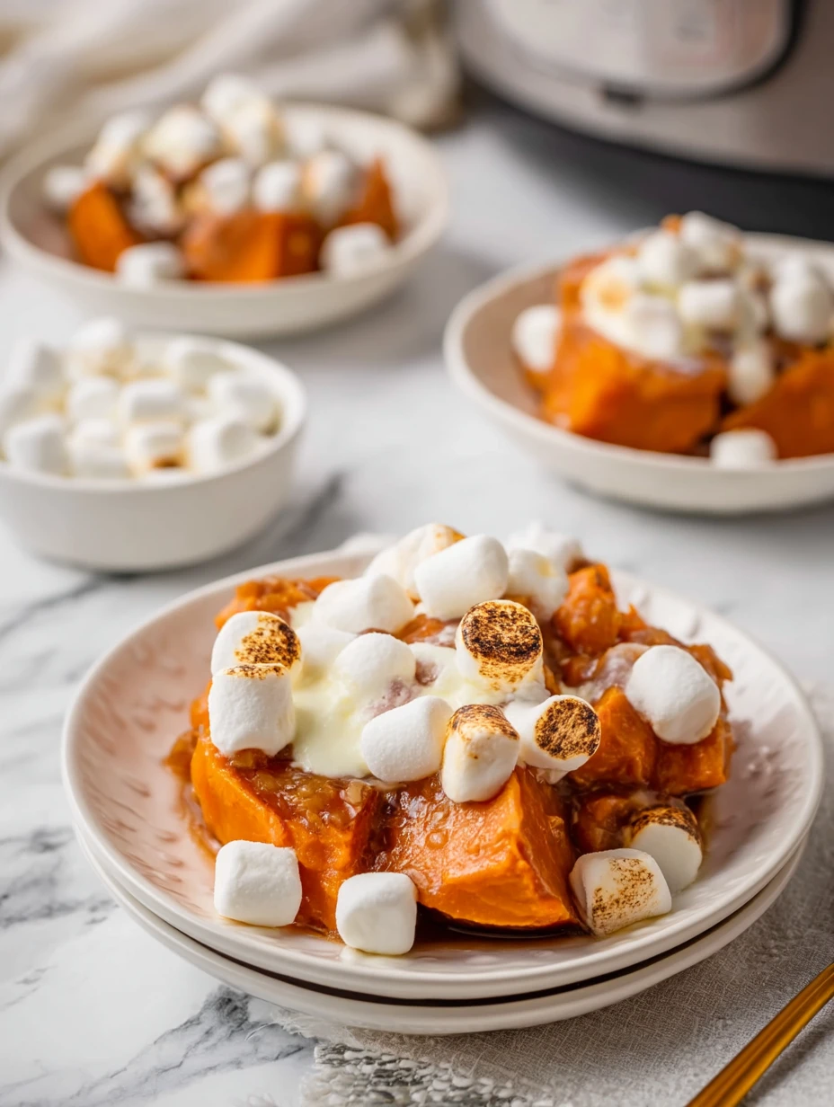Keywords: crockpot sweet potatoes, easy holiday side, sweet potatoes with marshmallows