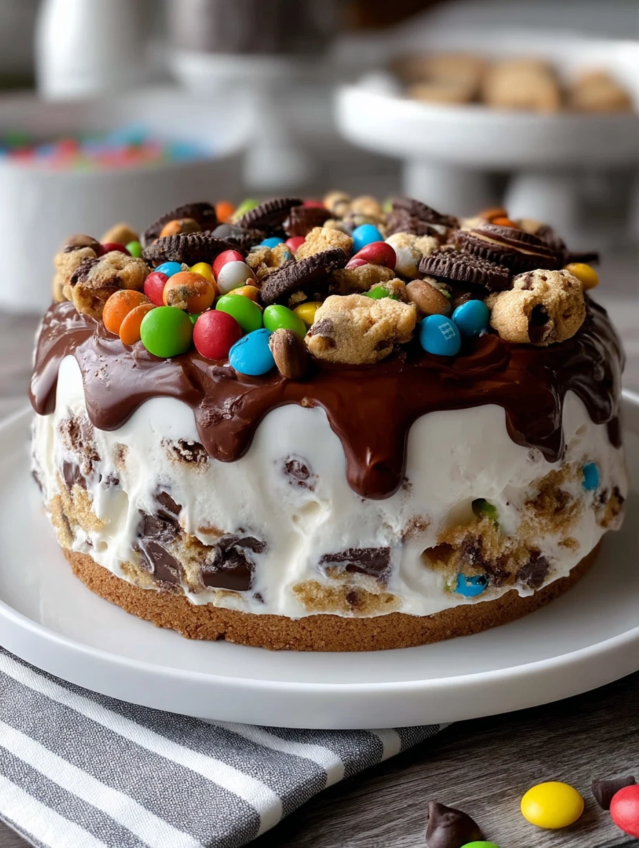 Decadent Chocolate M&M’s and Chocolate Chip Cookie Dough Ice Cream Cake