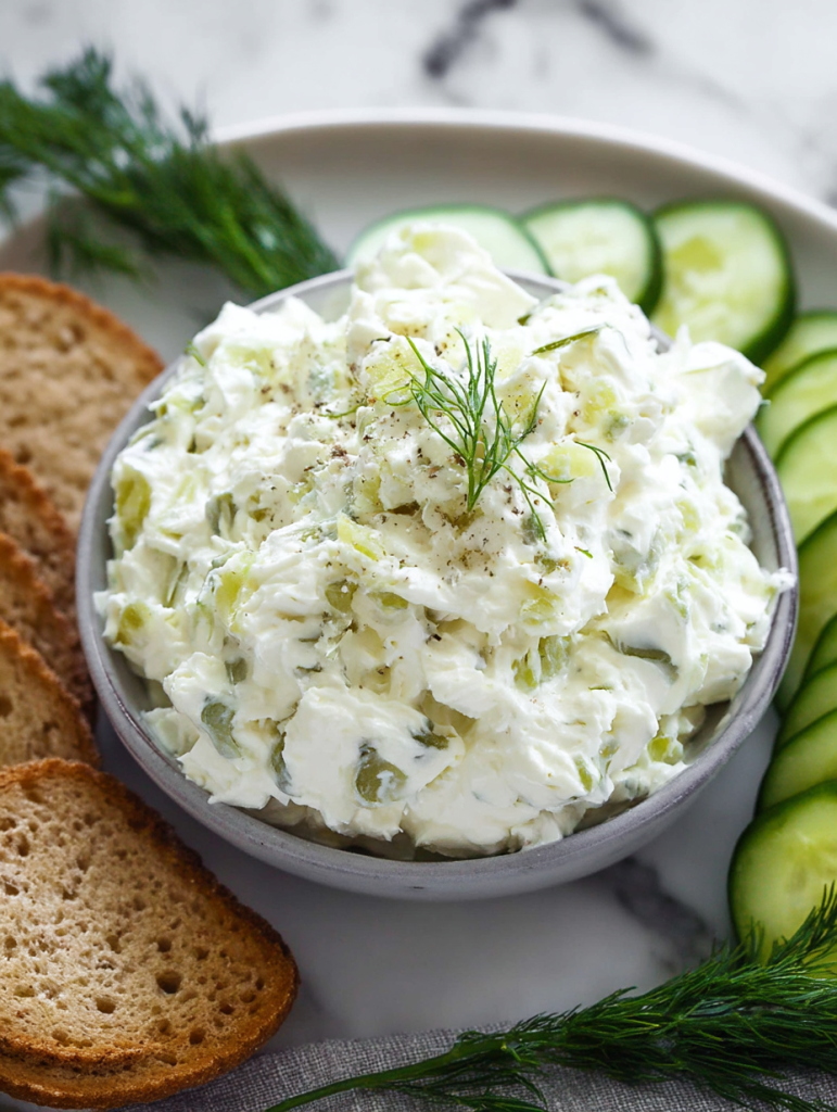 It’s a guaranteed crowd-pleaser at gatherings, picnics, or game nights. The fresh dill elevates every bite, while a hint of garlic ensures it’s never bland. Serve it chilled for maximum refreshment or use it as a bagel schmear to start your day with a zing.