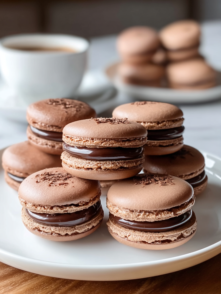 Chocolate macarons are best enjoyed at room temperature, after resting in the fridge for a day. The chilling enhances the flavor and texture, giving you that perfect bite. Store them in an airtight container in the refrigerator for up to 5 days or freeze for up to a month.