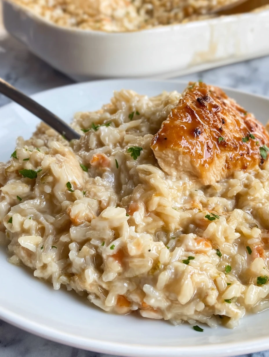 The beauty of this dish lies in its simplicity. You don’t need to pre-cook anything—just mix, layer, and let the oven do all the magic. The result? Juicy, well-seasoned chicken nestled in ultra-creamy rice with a golden, caramelized finish on top. It feels indulgent, but it couldn’t be easier to make.