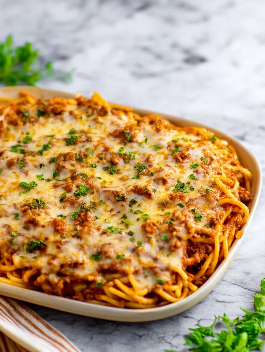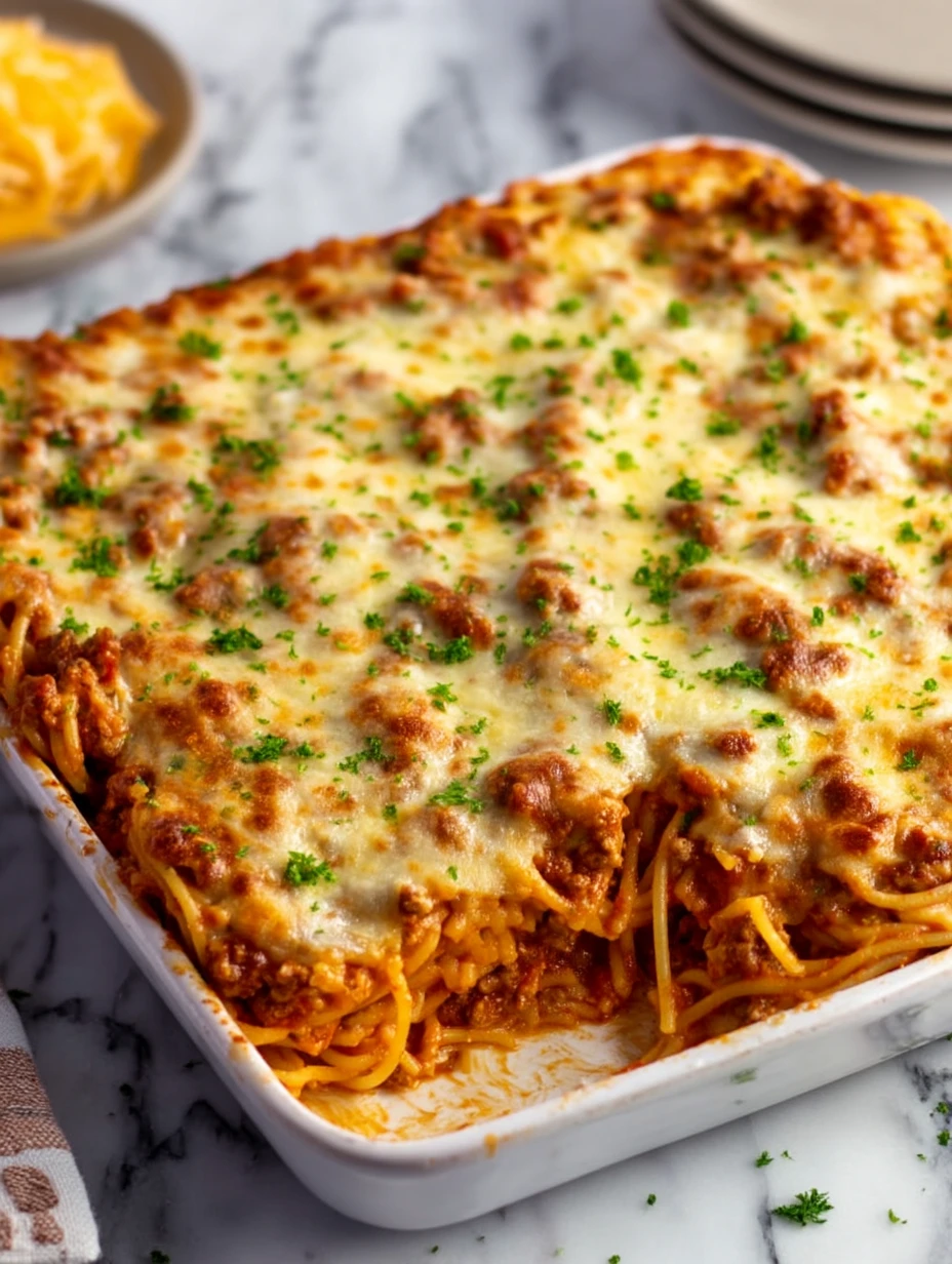 Need an easy dinner idea that’s hearty, cheesy, and guaranteed to satisfy everyone at the table? This Easy Baked Spaghetti is the weeknight hero you’ve been craving. Perfectly cooked pasta, savory meat sauce, layers of cheese, and a creamy surprise in the middle make this dish a standout in the world of easy dinner recipes. Whether you’re looking for a comforting casserole, a quick meal prep solution, or something to bring to the next potluck, this baked spaghetti has your back. Great for fans of quick dinners, comfort food, or those seeking easy food ideas that taste like home.