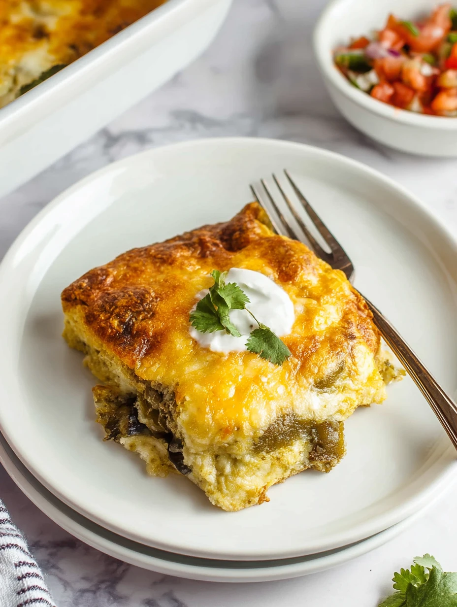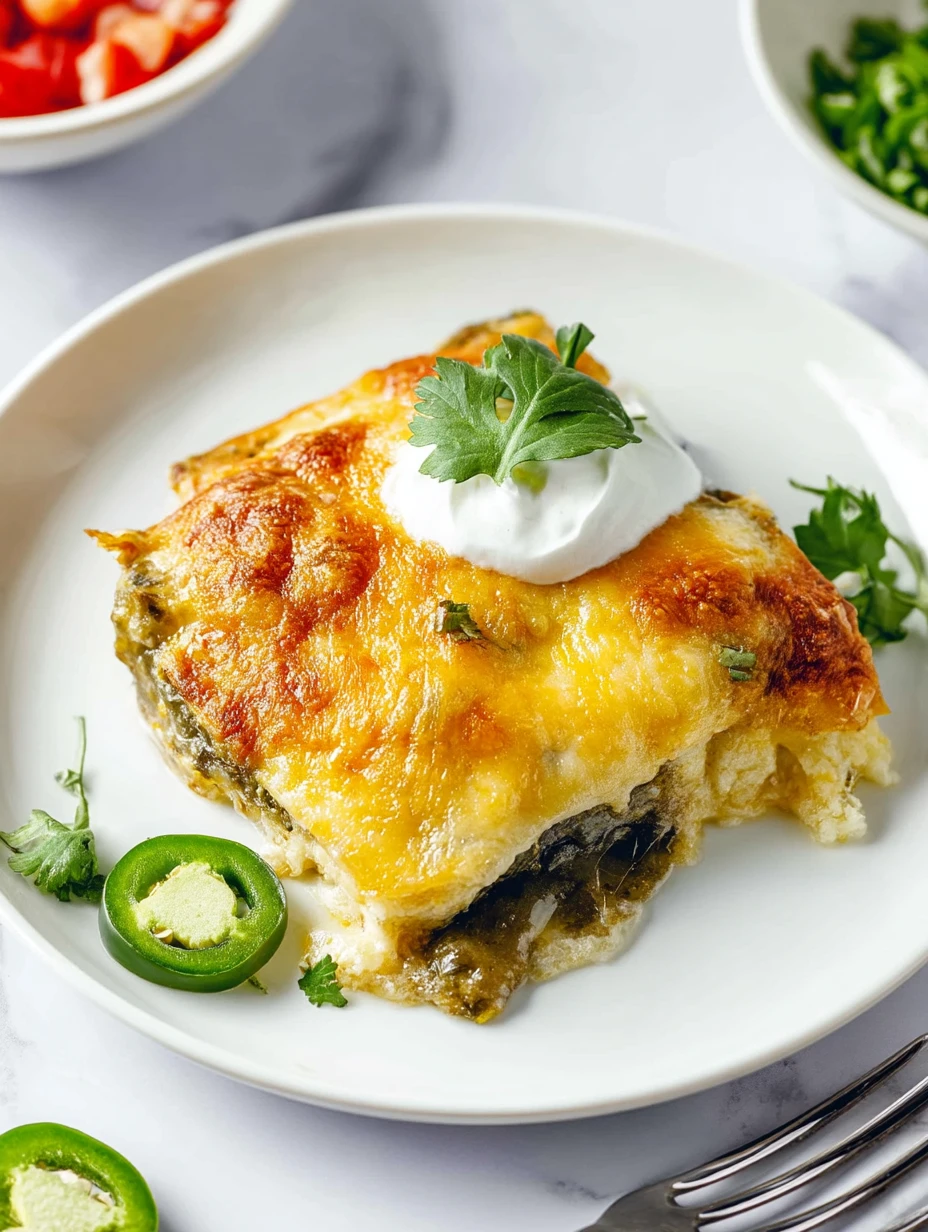 This recipe is perfect for weeknight dinners or weekend brunches. It’s hearty enough to be a main course but flexible enough to serve as a flavorful side. With layers of gooey cheese, smoky green chiles, and a fluffy egg batter, every bite tastes like comfort with a kick.