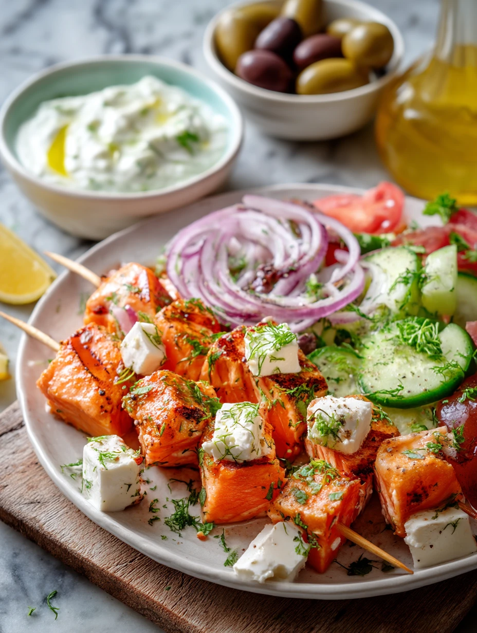 When I make these skewers, I usually build the whole plate around them. I add a cool yogurt sauce, sliced cucumbers, olives, a little feta, and a squeeze of extra lemon right before serving. It turns into one of those easy dinner ideas that feels wholesome enough for an everyday meal and special enough for guests.