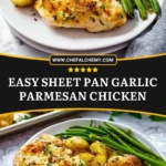 Easy Sheet Pan Garlic Parmesan Chicken is the kind of meal that makes busy nights feel easy and satisfying. Juicy seasoned chicken breasts roast alongside tender baby potatoes until everything is golden, savory, and packed with garlicky parmesan flavor. It is a simple sheet pan dinner that works beautifully for a quick breakfast-for-dinner idea, easy dinner, family meal, weeknight recipe, comfort food craving, and practical food ideas when you want something hearty without a pile of dishes.