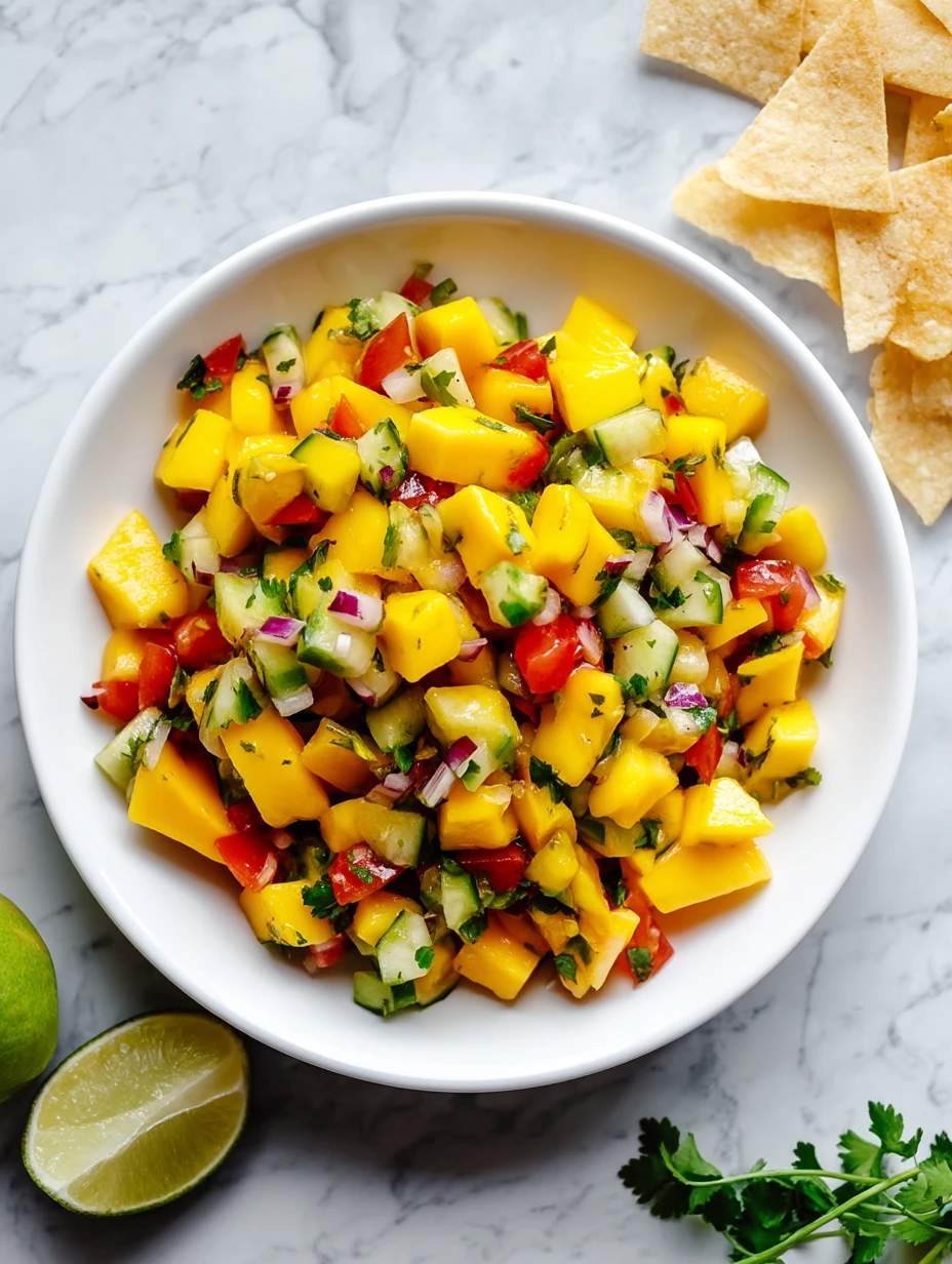 The beauty of mango salsa lies in its simplicity. Every bite bursts with brightness and texture, from the creamy mango to the crunch of cucumbers and onions. It’s colorful, refreshing, and best of all, takes only minutes to whip up. The perfect go-to for BBQs, picnics, or just when your dinner needs a boost of sunshine.