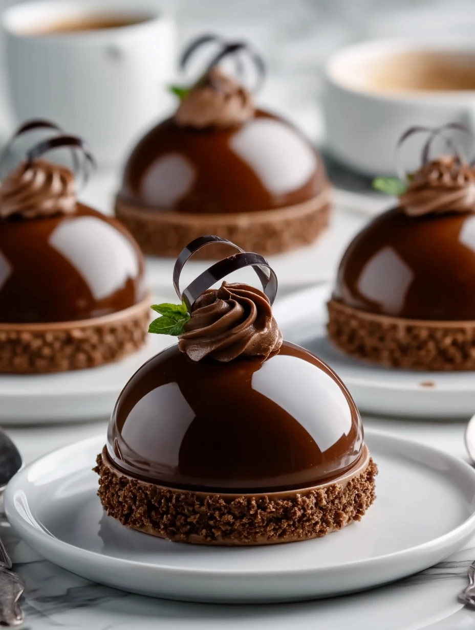 Make your dessert table unforgettable with these glossy, luxurious domes. The Elegant Chocolate Mascarpone Dome Dessert brings together a silky mascarpone mousse, rich dark chocolate, and a crisp cookie base — each bite melts into pure elegance. Whether you’re searching for a show-stopping easy dessert idea, an elevated dinner party dessert, or a holiday dessert with wow-factor, this one hits every mark. Smooth, shiny, and sensational — this dome recipe fits right into your collection of quick desserts, special occasion food, or plated dessert ideas.