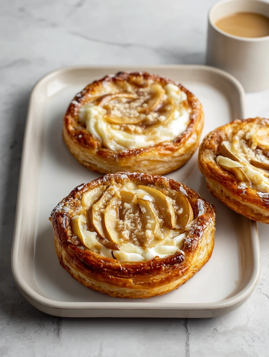 Golden, crisp, and layered with bold fall flavors, these Espresso Apple Cream Cheese Danishes are a bakery-style treat made effortlessly at home. Imagine buttery puff pastry cradling creamy cheesecake filling, espresso-glazed apples, and a finishing drizzle of vanilla icing. Whether it’s for brunch, a cozy coffee break, or a weekend treat, this pastry delivers both flavor and presentation.