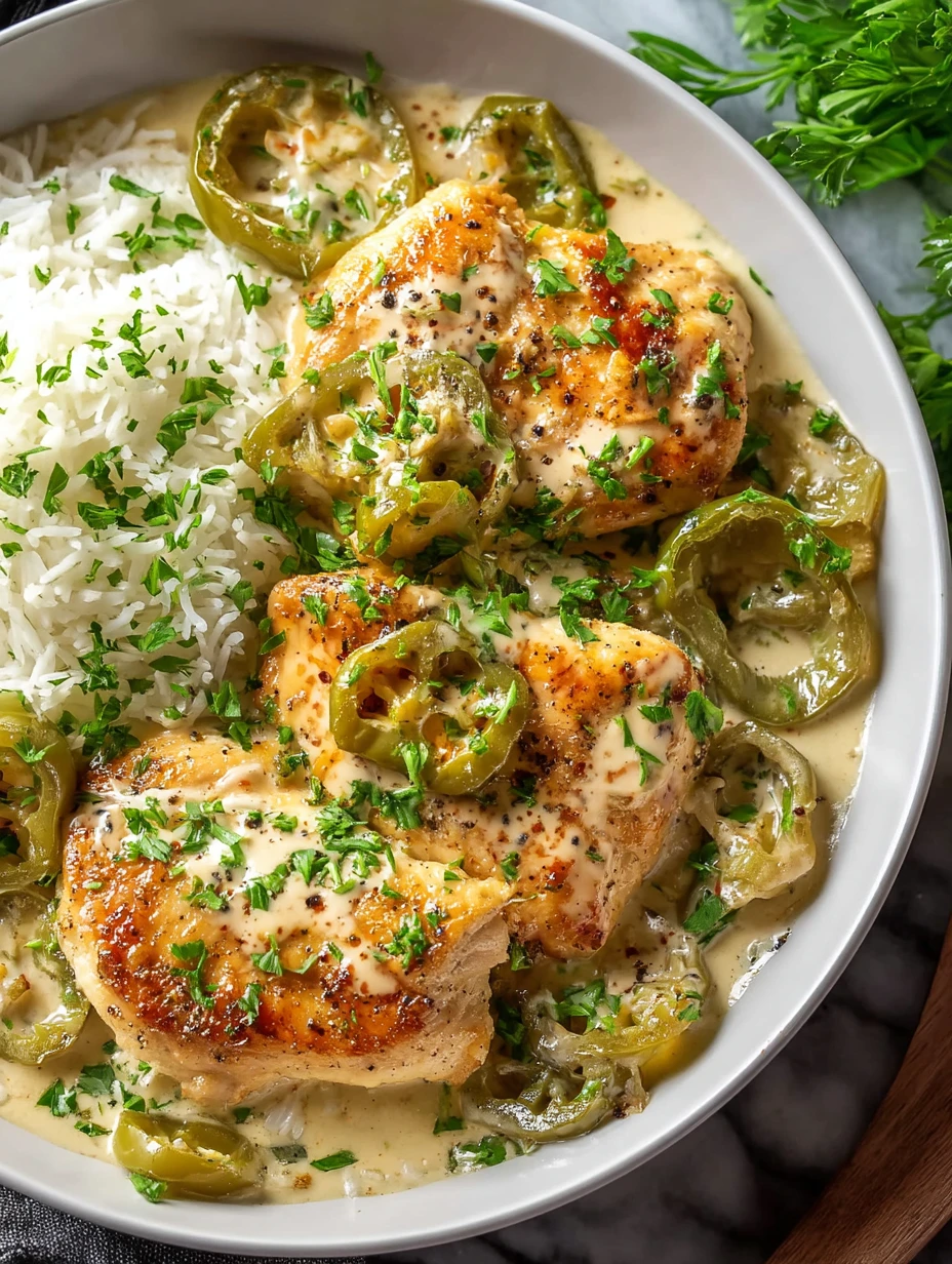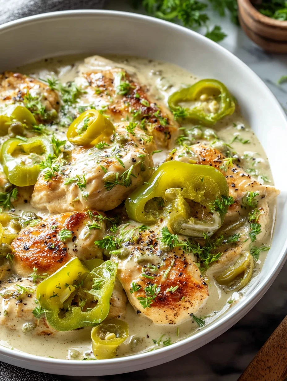 For me, the magic of this dish is the contrast. You get tender seared chicken with a savory crust, then a luscious cream sauce with buttery richness, and finally the briny tang of pepperoncini cutting through it all. That balance keeps it from feeling too heavy.