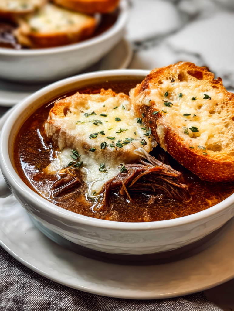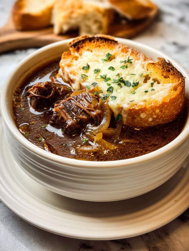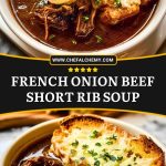 Warm, rich, and unforgettable—this French Onion Beef Short Rib Soup is the ultimate comfort in a bowl. Imagine the deep caramelized sweetness of slow-cooked onions, the savory depth of red wine-kissed beef broth, and the tender pull-apart short ribs topped with golden cheesy baguette slices. Whether you’re looking for an easy dinner, cozy food ideas for colder nights, or a hearty and healthy snack, this soup delivers satisfaction every time. Perfect for fall gatherings, winter dinners, or impressing guests with something indulgent and timeless.