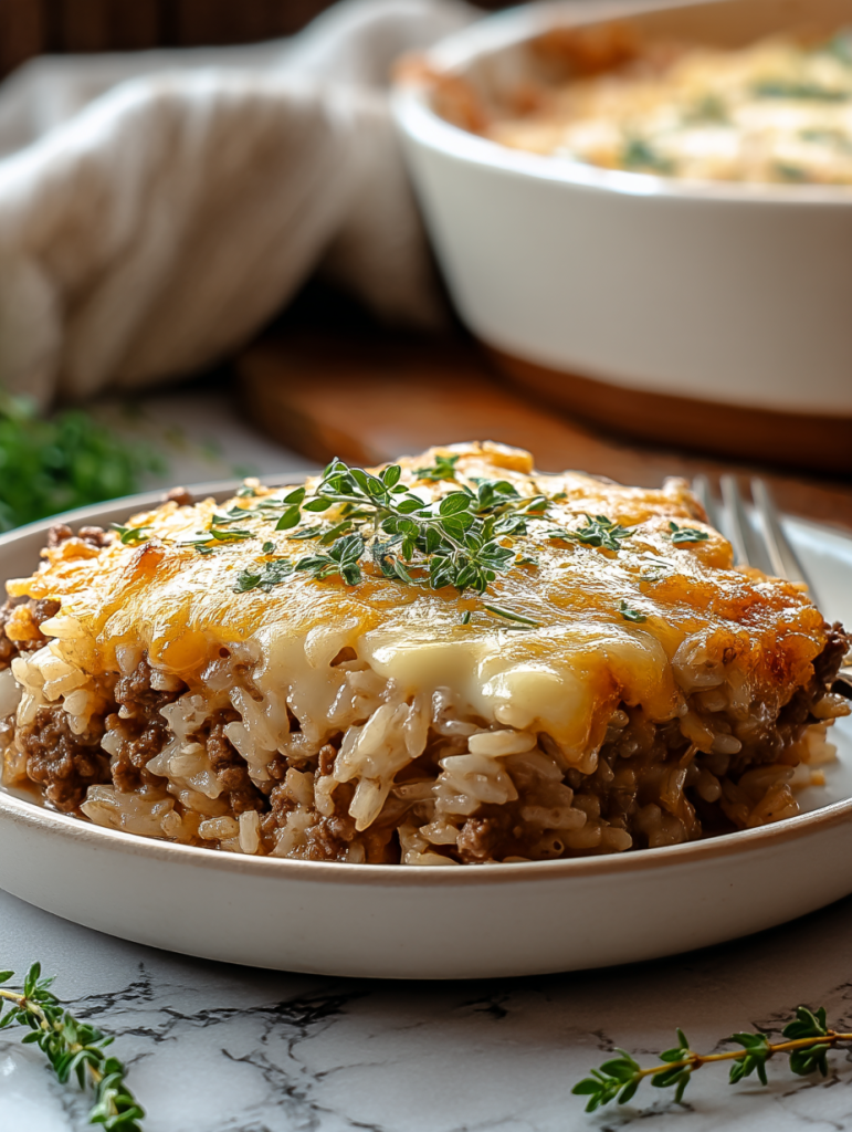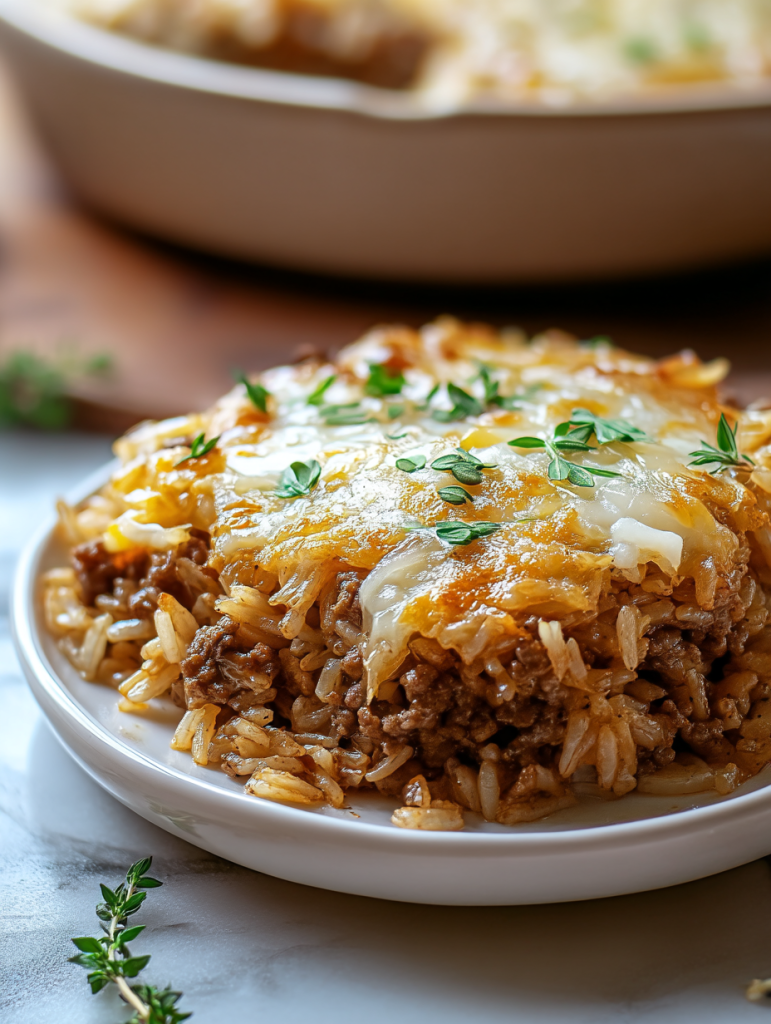 Inspired by classic French onion soup, this casserole captures the same rich, oniony depth without hours of cooking. The rice soaks up all the beefy goodness, while the cheese on top bakes into a perfectly gooey crust. Whether you’re feeding a crowd or craving leftovers for tomorrow, this dish will become a new favorite.