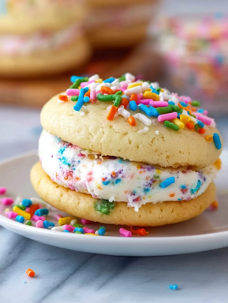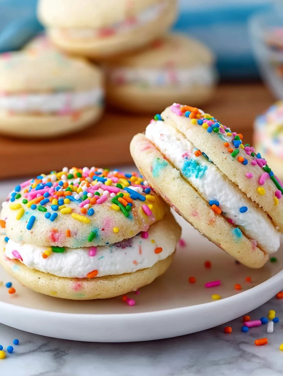 Keywords: funfetti cookies, dessert sandwich, birthday treats, colorful dessert, kids party snack