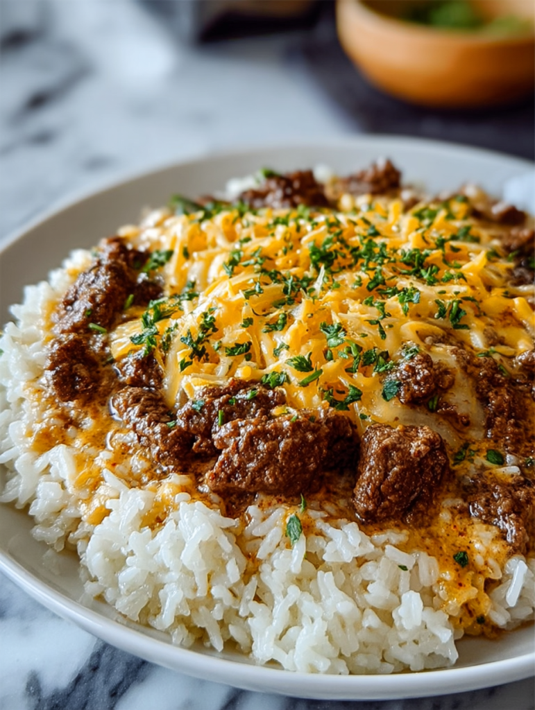 How To Make the Garlic Butter Beef and Rice Skillet with Cheddar Parmesan Sauce