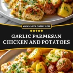 Craving a cozy, no-fuss dinner that tastes like it came from your favorite restaurant? This Garlic Parmesan Chicken and Potatoes delivers juicy, oven-baked chicken with a golden cheesy crust, plus tender roasted potatoes that soak up every drop of garlicky butter sauce. It’s an easy recipe that fits busy weeknights, but it’s special enough for guests too. Serve it when you need quick dinner ideas, simple comfort food, or a reliable go-to for family-friendly meals—this one-pan wonder checks every “easy dinner,” “food ideas,” and “weeknight favorite” box.
